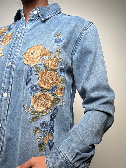 Stetson Womens L/S Denim Shirt with Floral Embroidery