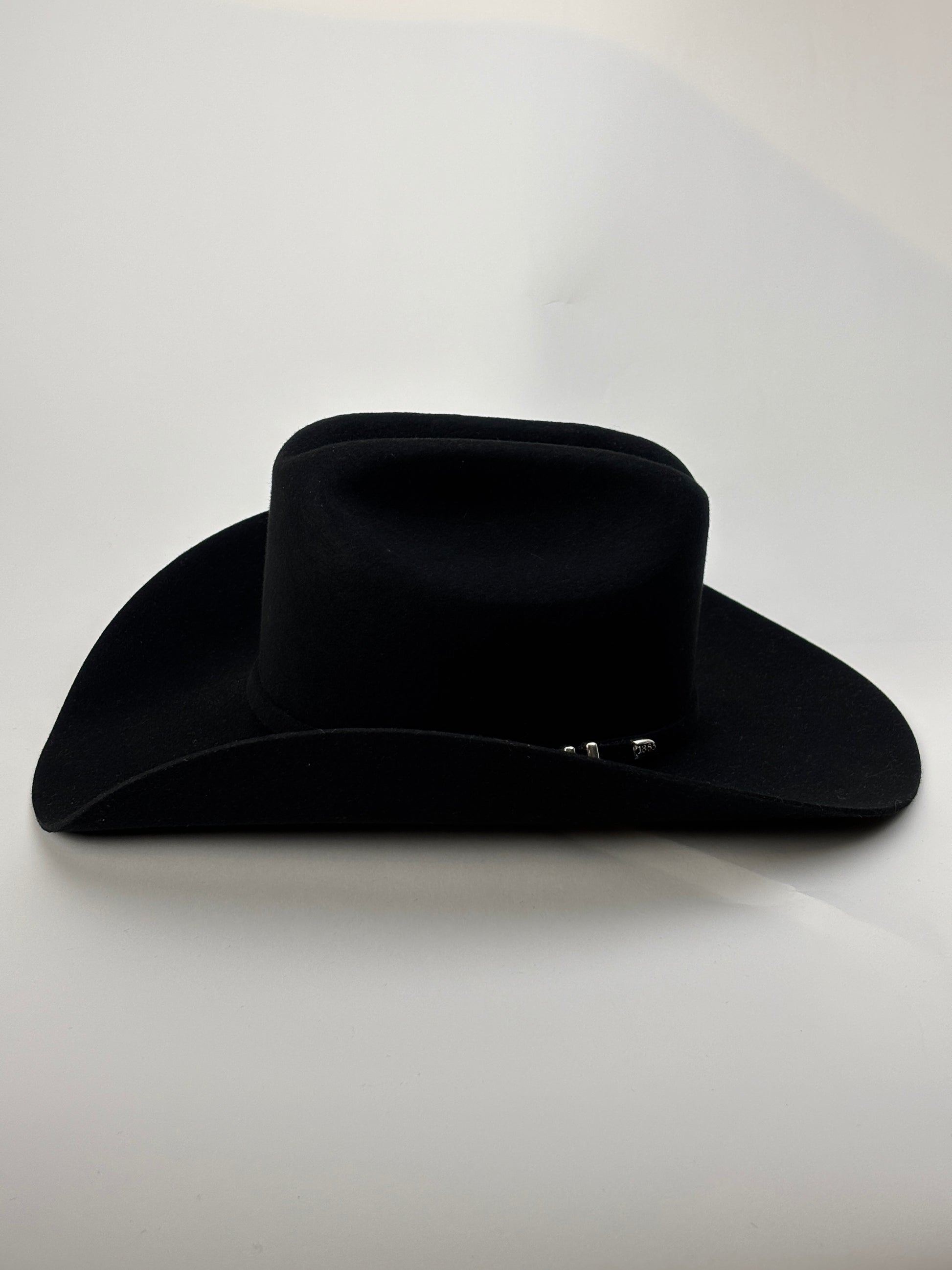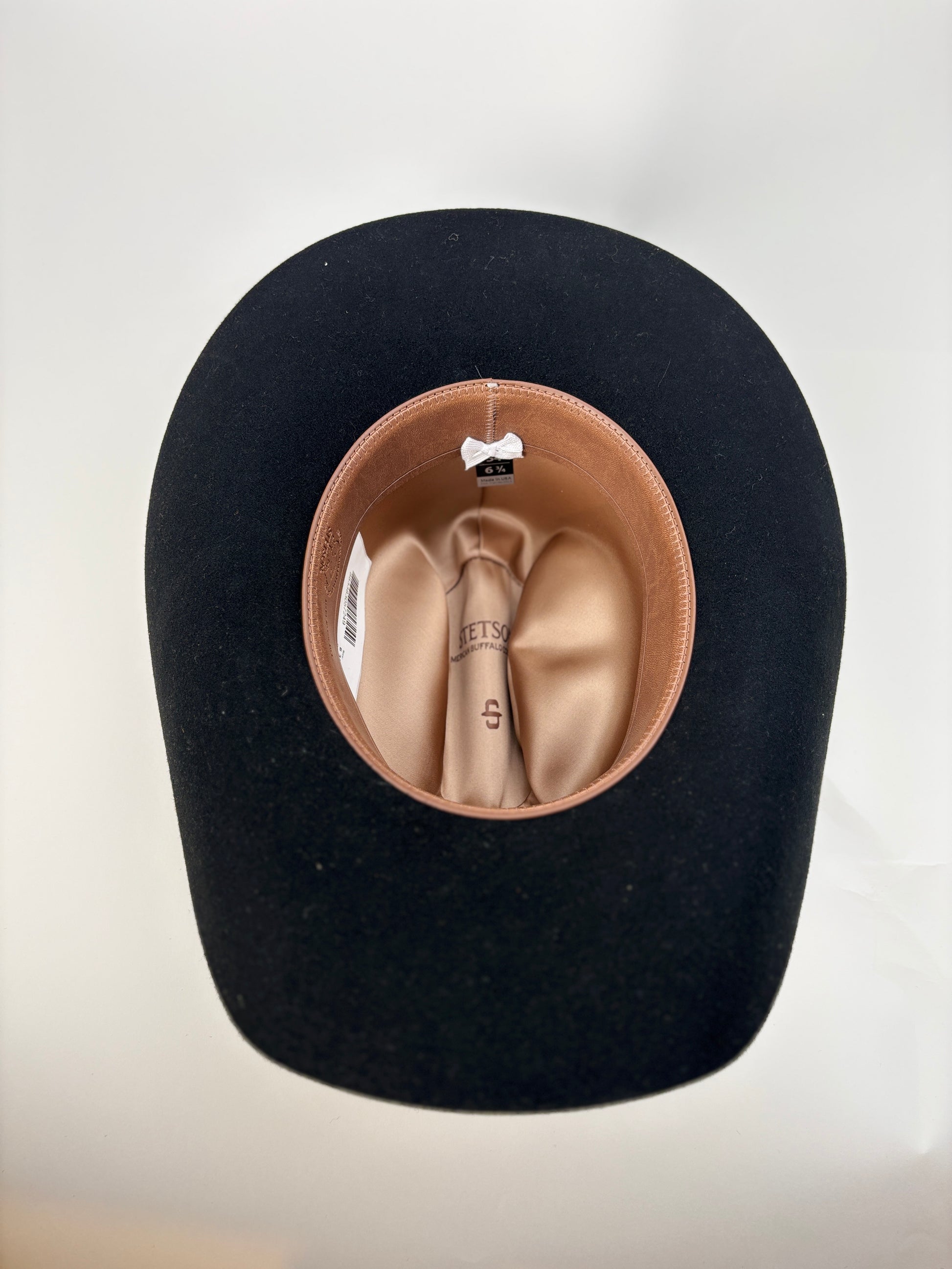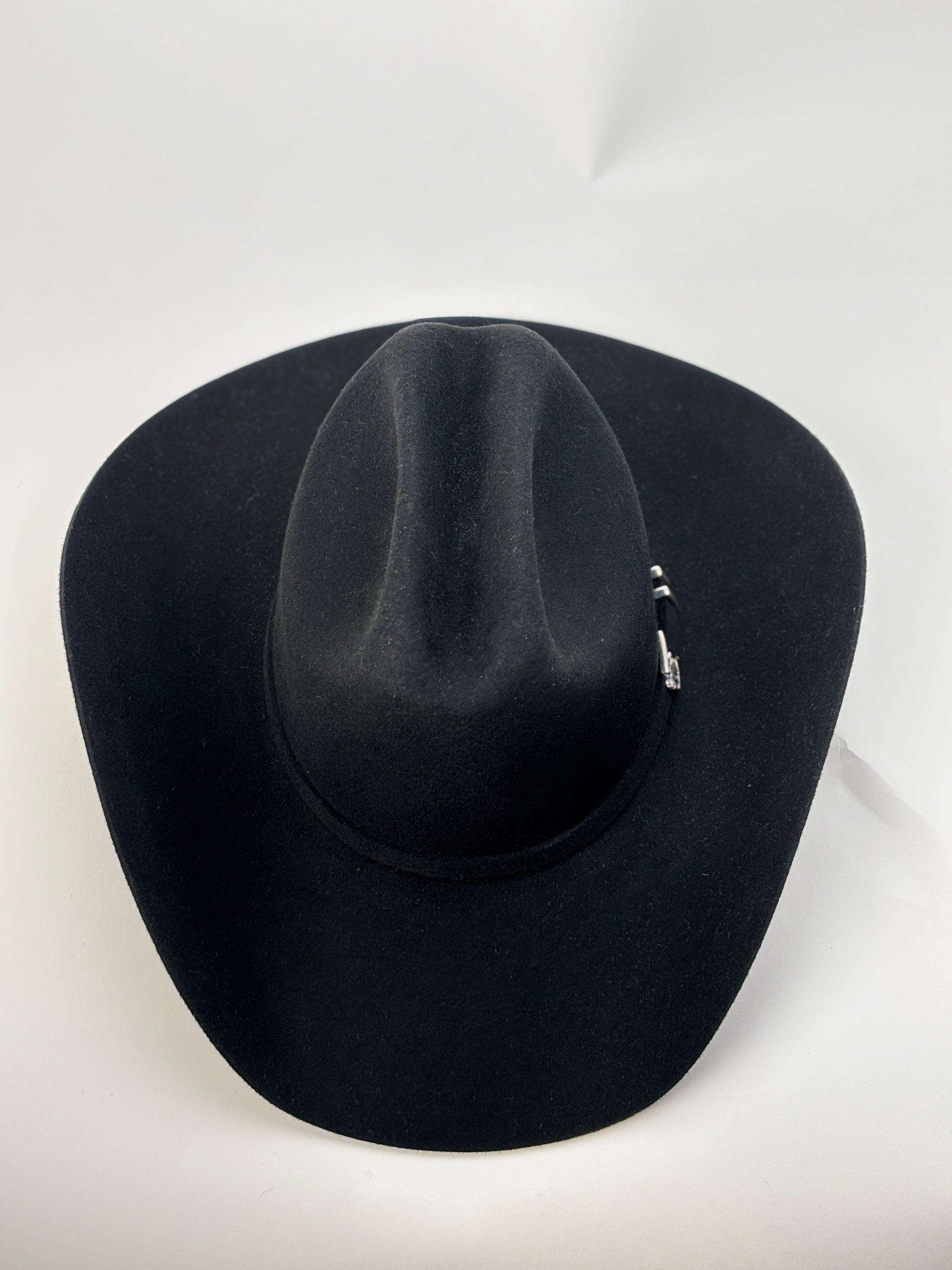 The Stetson 75 Apache 4X represents authentic American craftsmanship at its finest. Handmade in the U.S.A. from premium 4X quality buffalo felt, this classic cattleman features a distinctive 4⅝" oval crown and 4" brim with a pleasingly coarse texture that ages beautifully. The matching self-felt band is anchored by a three-piece silver-tone buffalo buckle set, while a genuine leather sweatband and full satin liner provide secure, all-day comfort. Built to withstand the elements, this hat arrives in an original Stetson box—a timeless investment piece that defines western heritage and refined style.