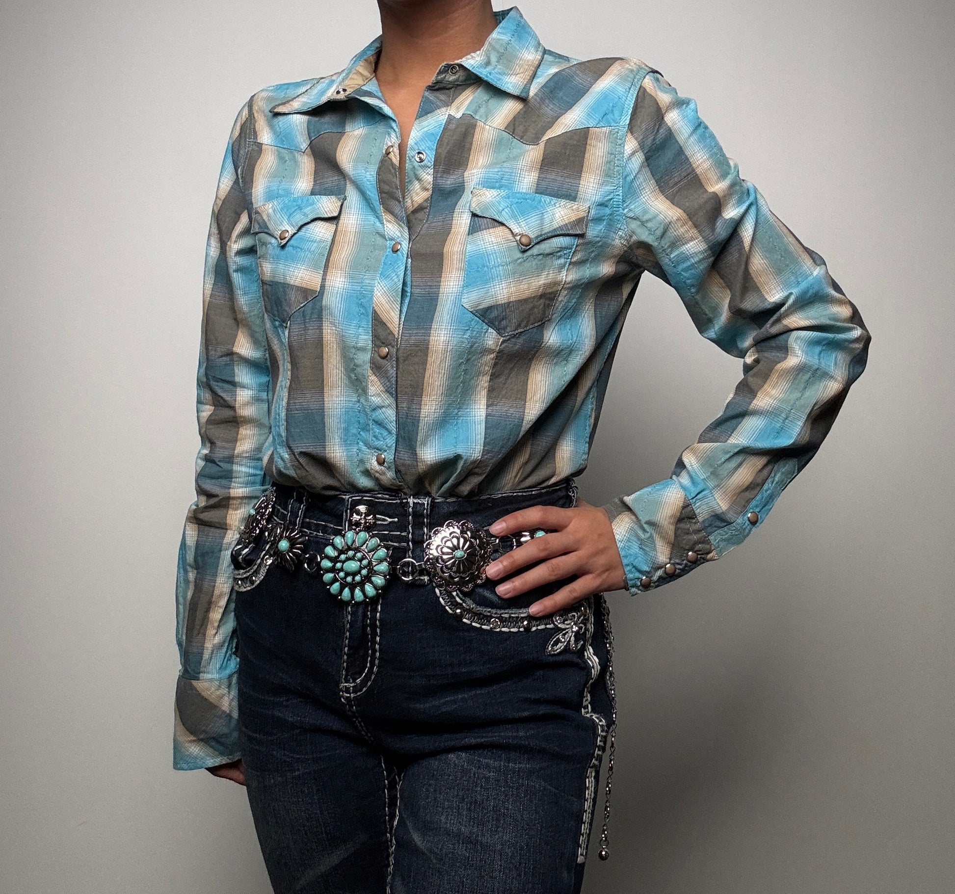 Featuring a relaxed fit, pointed collar, and classic western yoke detailing, this shirt pairs beautifully with denim jeans, shorts, or layered over a tank. Whether you’re headed to the beach, the rodeo, or your favorite local hangout, this versatile piece brings the spirit of the West with a cool, coastal vibe.