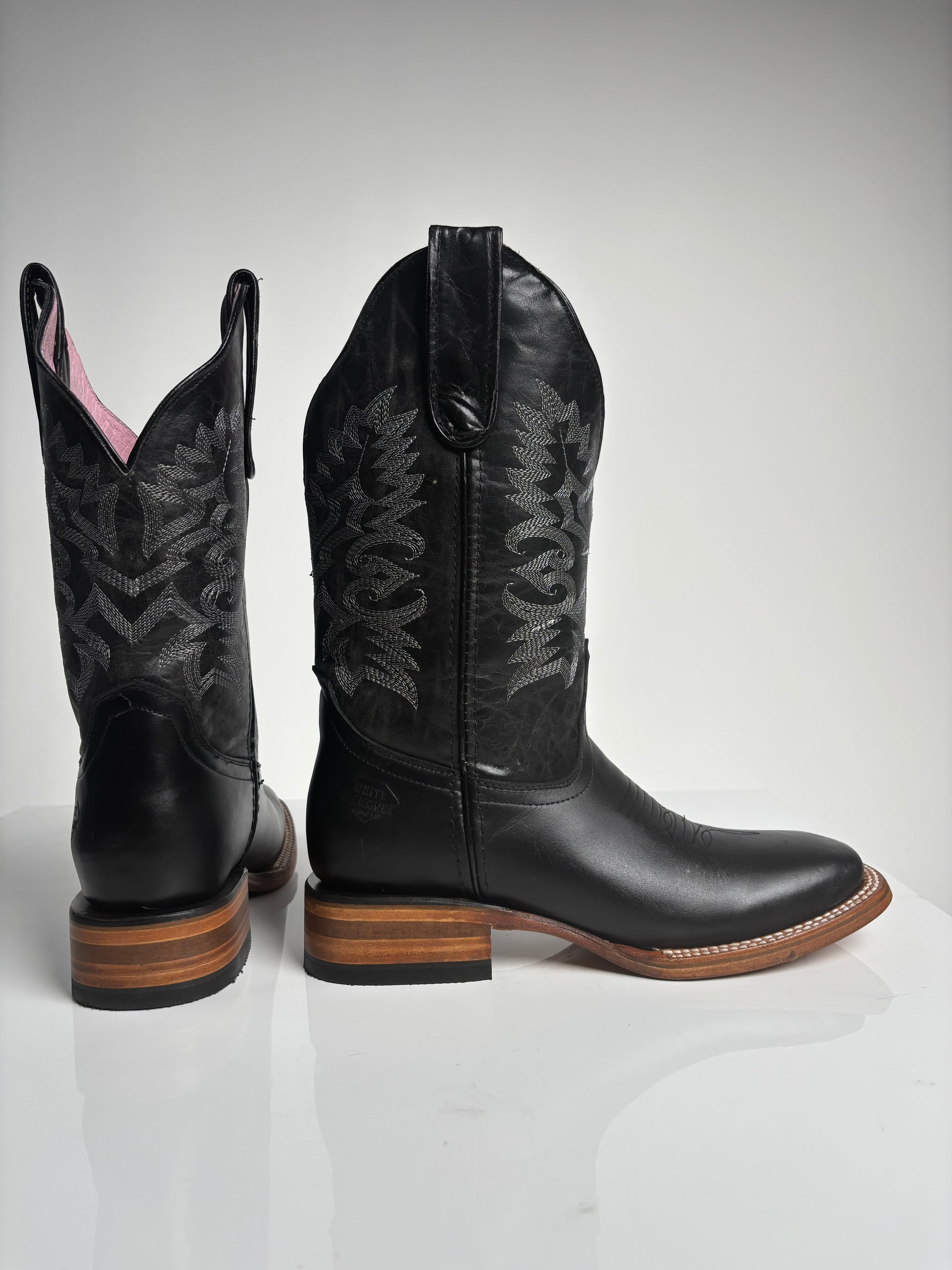 Unleash your inner cowgirl with our Women's Black Western Rodeo Boot - White Diamond. Made with 100% leather, these stylish and authentic boots feature a western finish and pink interior for a touch of femininity. With pull straps, wide calf access, and a true to size fit, you'll be ready for any rodeo adventure.
